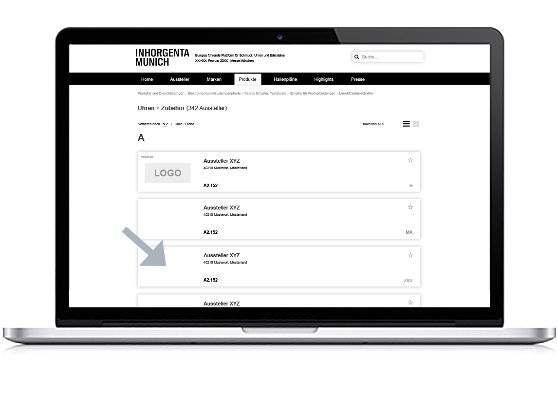 You also want to be found under another name in the list of exhibitors (online, app and print)? Then book an additional entry.